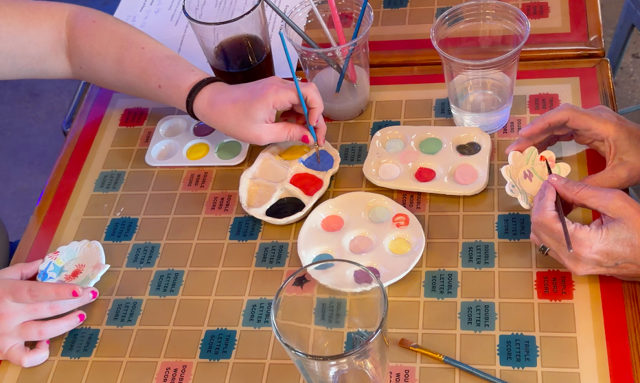 Book a time to have a fun date night, friend hang, or meeting while you create. We have a variety of handmade bisque you can paint while enjoying a beverage from 3 Daughters Brewery. Pieces range in price from $20 to $60. When they are finished they will be microwave, dishwasher and oven safe.